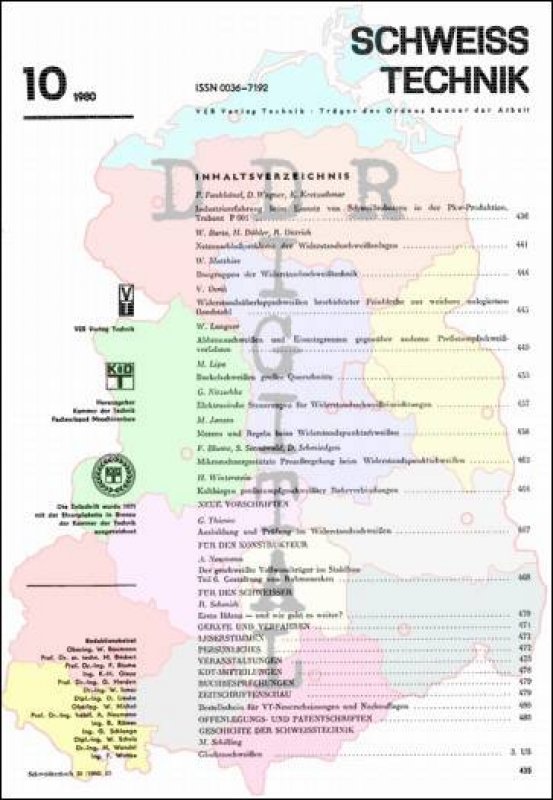 Ausgabe: Autor: Redaktionsbeirat Herausgeber: Kammer der Technik, Fachverband Maschinenbau Verlag Erscheinungsjahr: 1980 Anzahl Seiten: 52