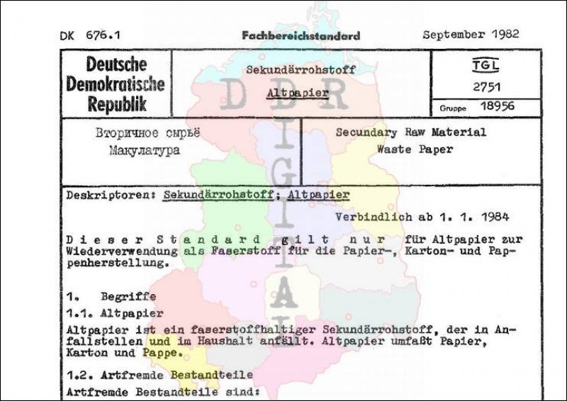 Standard: Fachbereichstandard Ausgabe: September 1982 verbindlich ab: 01.01.1984 Verantwortlich: VEB Kombinat Zellstoff und Papier Heidenau bestätigt am: 22.09.1982 Bestätigt von: VEB Kombinat Zellstoff und Papier Heidenau Anzahl Seiten: 10