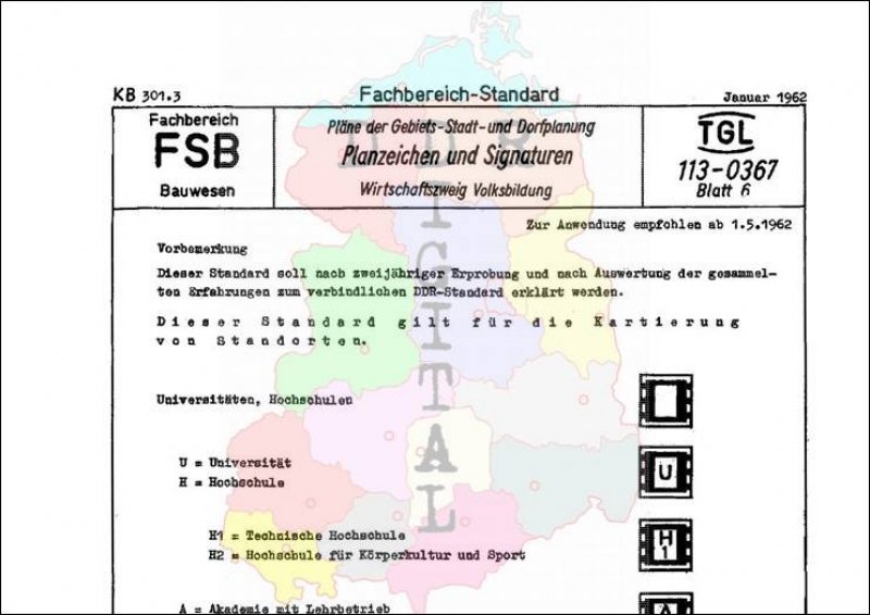 Standard: Fachbereichstandard Ausgabe: Januar 1962 verbindlich ab: 01.05.1962 Verantwortlich: bestätigt am: 24.01.1962 Bestätigt von: Ministerium für Bauwesen Anzahl Seiten: 4