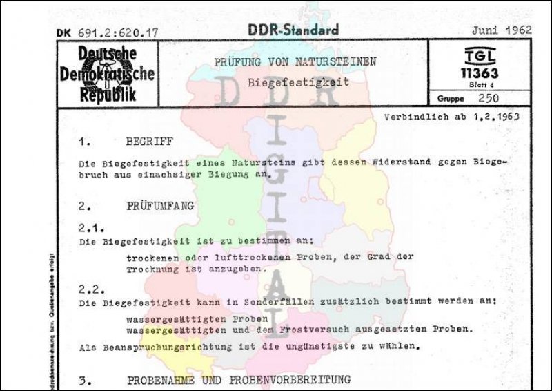 Standard: DDR-Standard Ausgabe: Juni 1962 verbindlich ab: 01.02.1963 Bearbeiter: Fachbereich 117, Baustoffe bestätigt am: 18.06.1962 Bearbeiter: Amt für Standardisierung Berlin Anzahl Seiten: 2