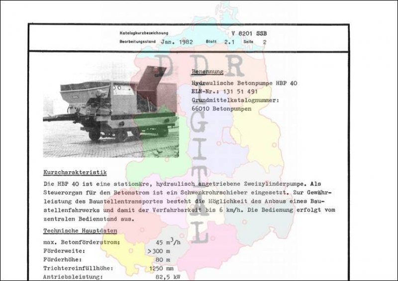 Kleinmechanismen: Hydraulische Betonmpumpe HBP 40 Ausgabe: Jan. 1982 Anzahl Seiten: 1 Notiz: