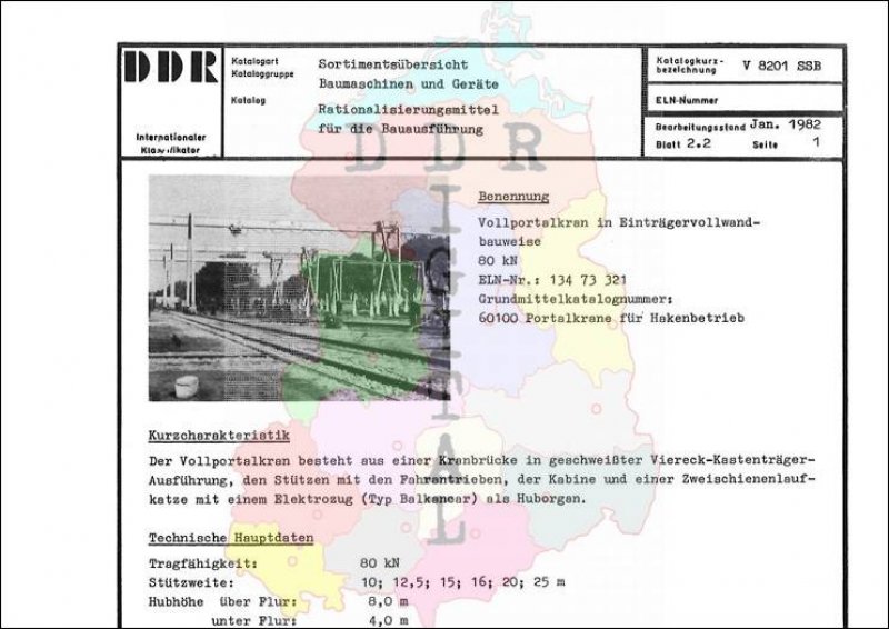 Kleinmechanismen: Vollportalkran in Einträgervollwandbauweise 80 kN Ausgabe: Jan. 1982 Anzahl Seiten: 1 Notiz: