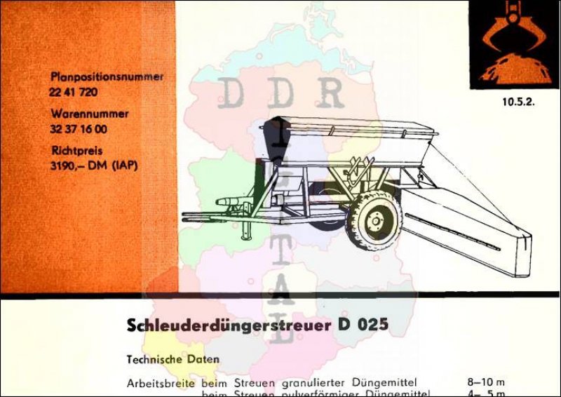 Herausgeber: VVB Landmaschinen- und Traktornbau Leipzig Entwicklungs- und Herstellerbetrieb: Landmaschinenbau Heinrich Laube KG Anzahl Seiten: 3 In dem Landmaschinen-Katalog sind Maschinen und Geräte enthalten, welche zur weiteren Mechanisierung in der sozialistischen Landwirtschaft bestimmt waren. Dieser Katalog sollte die Genossenschaften bei der Planung neuer Technik für ihren Betrieb unterstützen.
