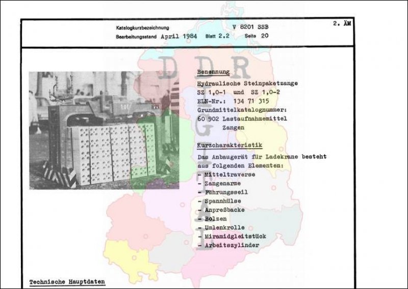 Kleinmechanismen: Hydraulische Steinpaketzange SZ 1,0-1 und SZ 1,0-2 Ausgabe: Apr. 1984 Anzahl Seiten: 1 Notiz: