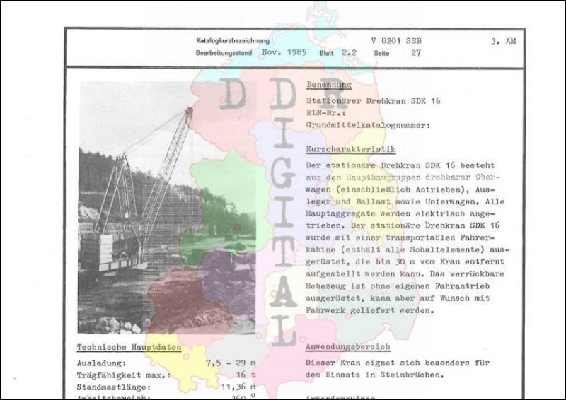 Kleinmechanismen: Stationärer Drehkran SDK 16 Ausgabe: Nov. 1985 Anzahl Seiten: 1 Notiz: