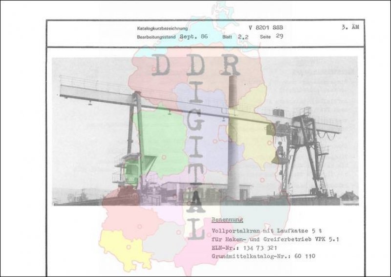 Kleinmechanismen: Vollportalkran mit Laufkatze 5 t für Haken- und Greiferbetrieb VPK 5.1 Ausgabe: Sep. 1986 Anzahl Seiten: 1 Notiz: