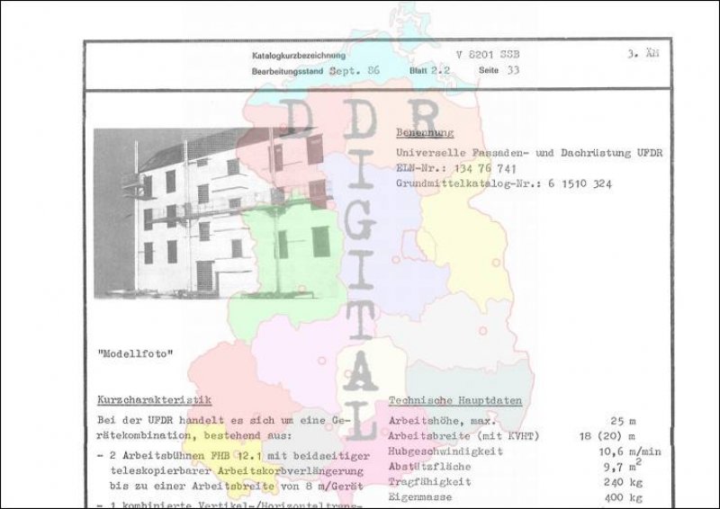 Rationalisierungsmittel für die BauausführungBeiinhaltet Kurzcharakteristik, Technische Hauptdaten, Anwendungsbereich, Mögliches Zubehör und Hersteller