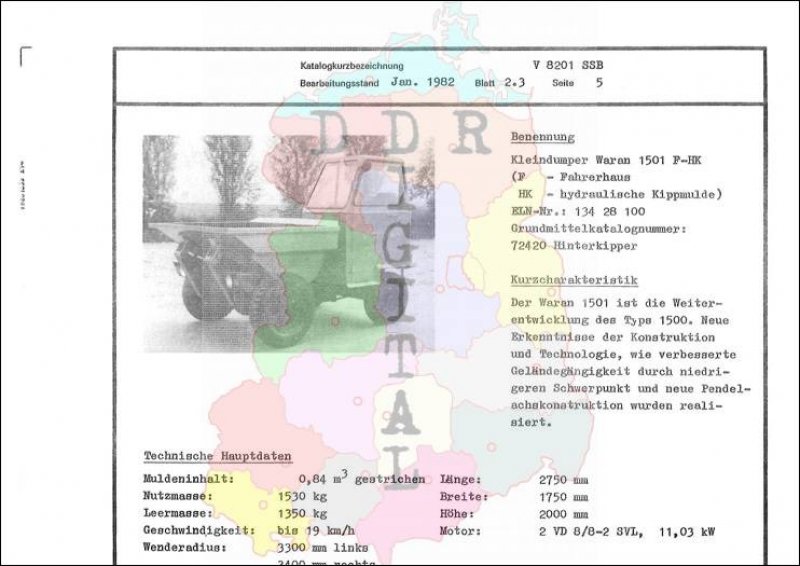 Kleinmechanismen: Kleindumper Waran 1501 F-HK Ausgabe: Jan. 1982 Anzahl Seiten: 1 Notiz: