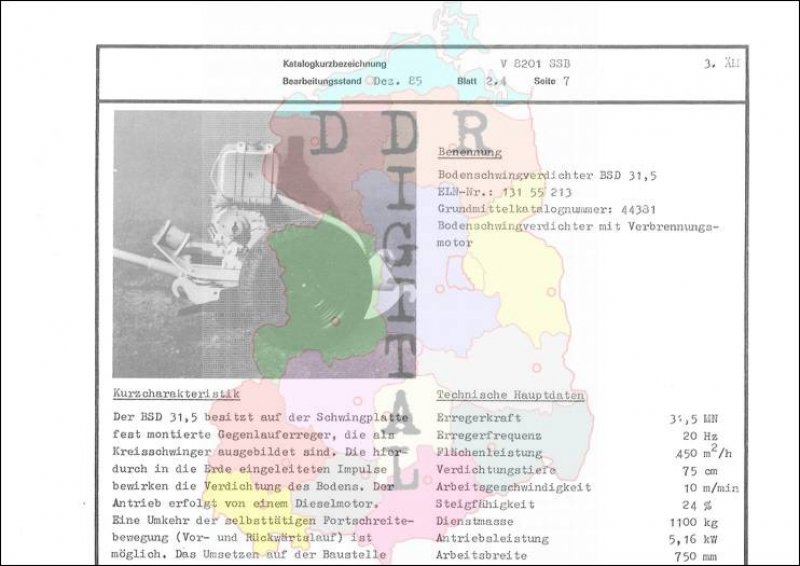 Kleinmechanismen: Bodenschwingverdichter BSD 31,5 Ausgabe: Dez. 1985 Anzahl Seiten: 1 Notiz: