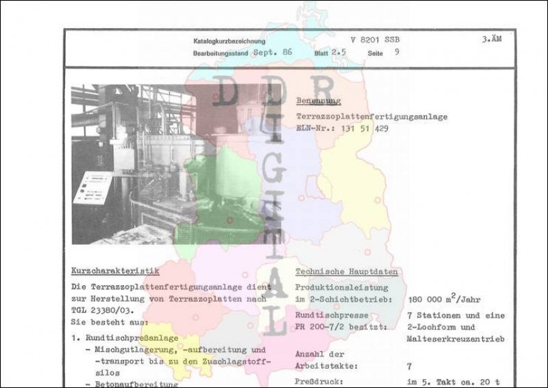 Kleinmechanismen: Terraszoplattenfertigungsanlage Ausgabe: Sep 1986 Anzahl Seiten: 2 Notiz: