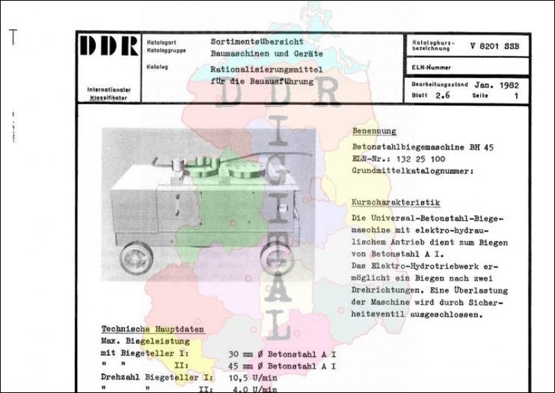 Kleinmechanismen: Betonstahlbiegemaschine BH 45 Ausgabe: Jan. 1982 Anzahl Seiten: 1 Notiz: