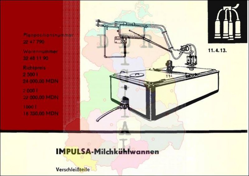 Herausgeber: VVB Landmaschinen- und Traktornbau Leipzig Entwicklungsbetrieb: VEB Maschinen- und Apparatebau Schkeuditz b. Leipzig Herstellerbetrieb: VEB Kyffhäuserhütte, Artern Anzahl Seiten: 1 In dem Landmaschinen-Katalog sind Maschinen und Geräte enthalten, welche zur weiteren Mechanisierung in der sozialistischen Landwirtschaft bestimmt waren. Dieser Katalog sollte die Genossenschaften bei der Planung neuer Technik für ihren Betrieb unterstützen.