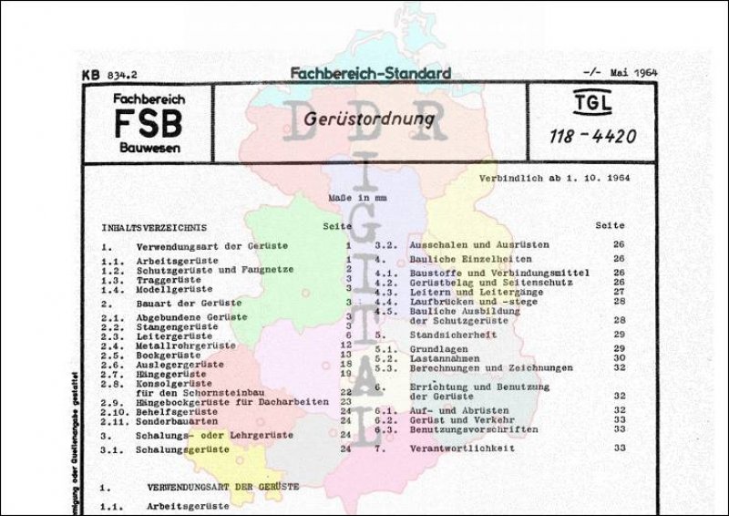 Standard: Fachbereichstandard Ausgabe: Mai 1964 verbindlich ab: 01.10.1967 Zuständiger Fachbereich: bestätigt am: 22.05.1964 Bestätigt von: Ministerium für Bauwesen Anzahl Seiten: 36
