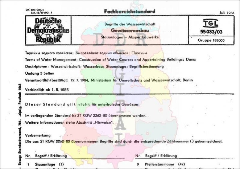 Standard: Fachbereichstandard Ausgabe: Juli 1984 verbindlich ab: 01.08.1985 Verantwortlich: Ministerium für Umweltschutz und Wasserwirtschaft bestätigt am: 12.07.1984 Bestätigt von: Ministerium für Umweltschutz und Wasserwirtschaft Anzahl Seiten: 6