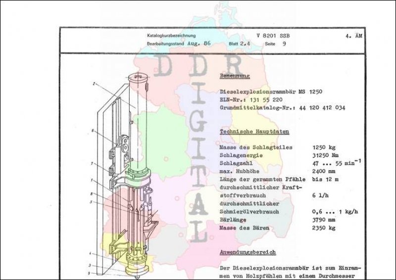 Kleinmechanismen: Dieselexplosionsrammbär MS 1250 Ausgabe: Aug. 1986 Anzahl Seiten: 1 Notiz: