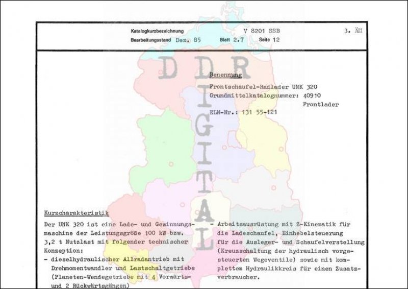 Kleinmechanismen: Frontschaufel-Radlader UNK 320 Ausgabe: Dez. 1985 Anzahl Seiten: 2 Notiz: