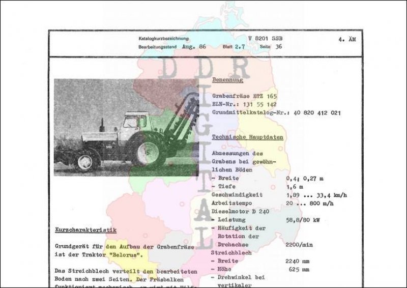 Kleinmechanismen: Grabenfräse ETZ 165 Ausgabe: Aug. 1986 Anzahl Seiten: 2 Notiz: