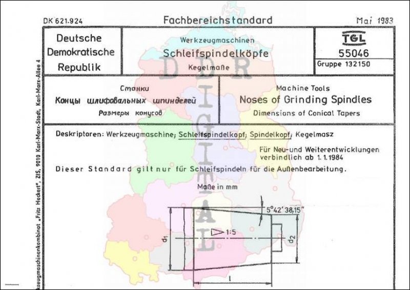 Standard: Fachbereichstandard Ausgabe: März 1983 verbindlich ab: 01.01.1984 Verantwortlich: VEB Werkzeugmaschinenkombinat 7. Oktober Berlin bestätigt am: 31.05.1983 Bestätigt von: VEB Werkzeugmaschinenkombinat 7. Oktober Berlin Anzahl Seiten: 2
