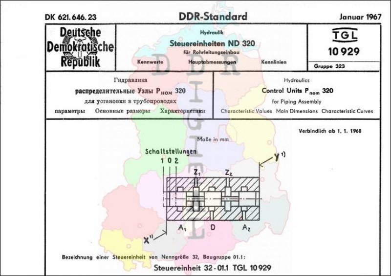 Standard: DDR-Standard Ausgabe: Januar 1967 verbindlich ab: 01.01.1968 Zuständiger Fachbereich: 25, Hydraulik bestätigt am: 30.01.1967 Bestätigt von: Amt für Standardisierung Berlin Anzahl Seiten: 6