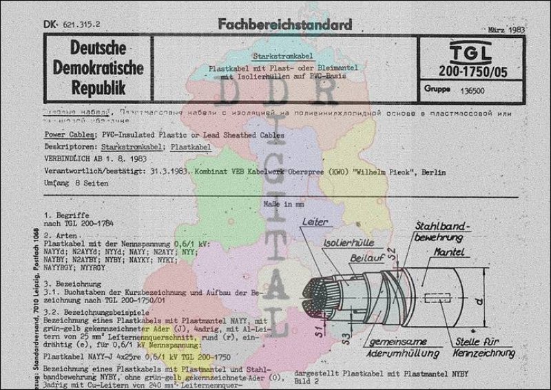 Standard: Fachbereichstandard Ausgabe: März 1983 verbindlich ab: 01.08.1983 Verantwortlich Kombinat VEB Kabelwerk Oberspree Wilhelm Pieck Berlin bestätigt am: 31.03.1983 Bestätigt von: Kombinat VEB Kabelwerk Oberspree Wilhelm Pieck Berlin Anzahl Seiten: 8