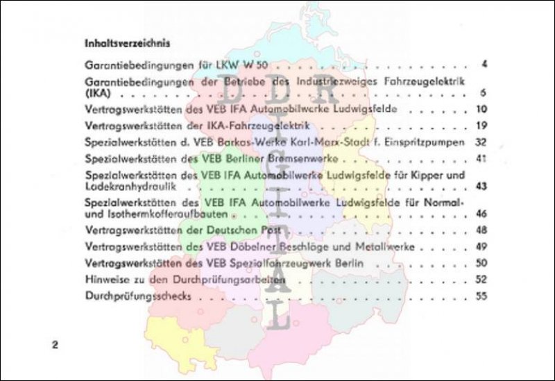 IFA W 50 L Durchprüfungsheft Vertragswerkstättenverzeichnis