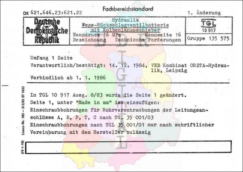 Standard: 1. Änderung Ausgabe: Dezember 1984 verbindlich ab: 01.01.1986 Verantwortlich VEB Kombinat ORSTA-Hydraulik Leipzig bestätigt am: 14.12.1984 Bestätigt von: VEB Kombinat ORSTA-Hydraulik Leipzig Anzahl Seiten: 2