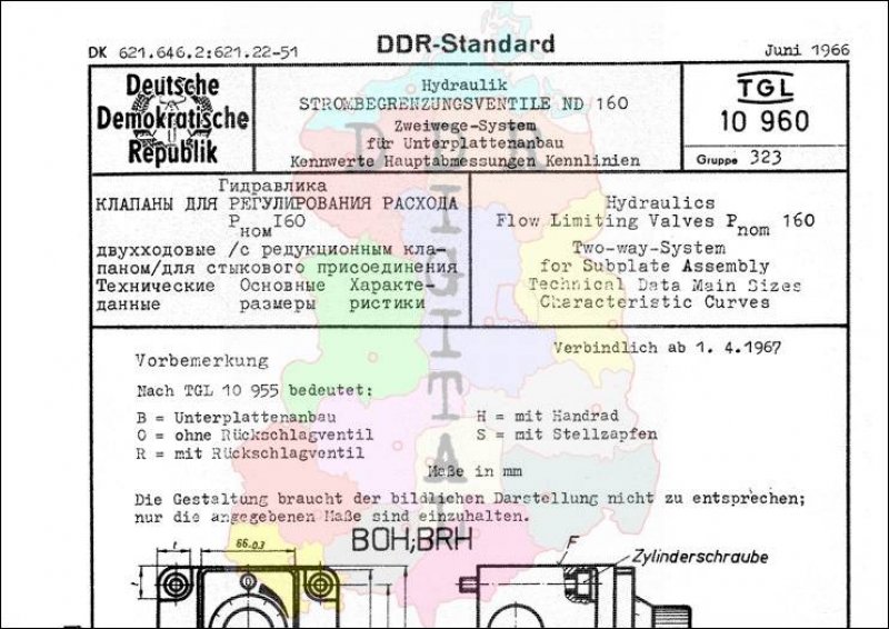 Standard: DDR-Standard Ausgabe: Juni 1966 verbindlich ab: 01.04.1967 Zuständiger Fachbereich: 25, Hydraulik bestätigt am: 20.06.1966 Bestätigt von: Amt für Standardisierung Berlin Anzahl Seiten: 12