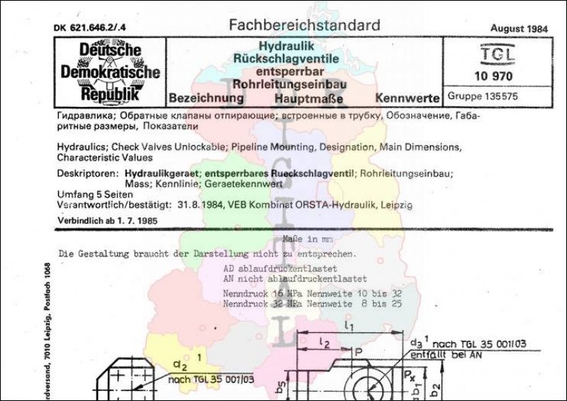Standard: Fachbereichstandard Ausgabe: August 1984 verbindlich ab: 01.07.1985 Verantwortlich VEB Kombinat ORSTA-Hydraulik Leipzig bestätigt am: 31.08.1984 Bestätigt von: VEB Kombinat ORSTA-Hydraulik Leipzig Anzahl Seiten: 6