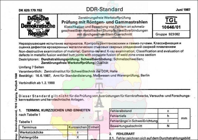 Standard: DDR-Standard Ausgabe: Juni 1987 verbindlich ab: 01.02.1988 Verantwortlich: Zentralinstitut für Schweisstechnik der Deutschen Demokratischen Republik bestätigt am: 16.06.1987 Bestätigt von: Amt für Standardisierung, Meßwesen und Warenprüfung Anzahl Seiten: 8