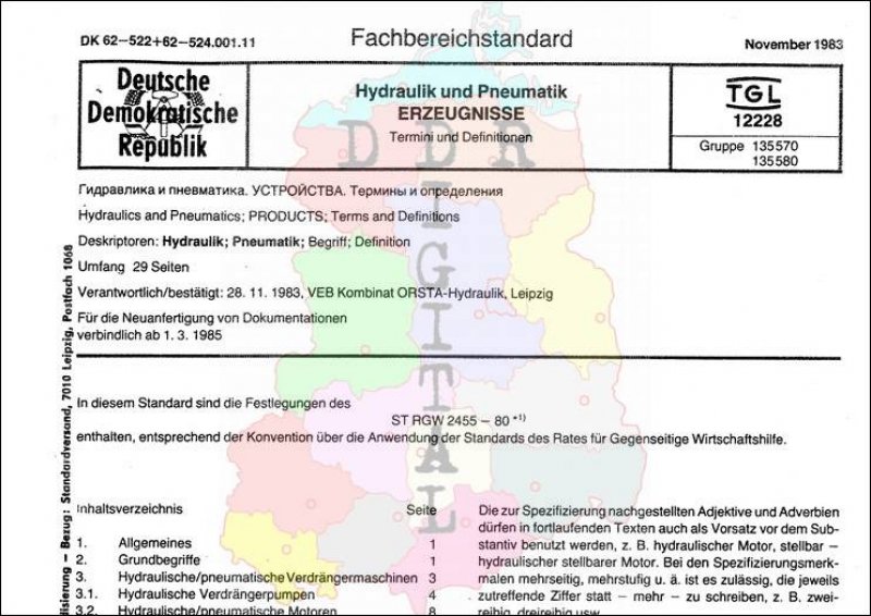 Standard: Fachbereichstandard Ausgabe: November 1983 verbindlich ab: 01.01.1985 Verantwortlich VEB Kombinat ORSTA-Hydraulik Leipzig bestätigt am: 28.11.1983 Bestätigt von: VEB Kombinat ORSTA-Hydraulik Leipzig Anzahl Seiten: 32