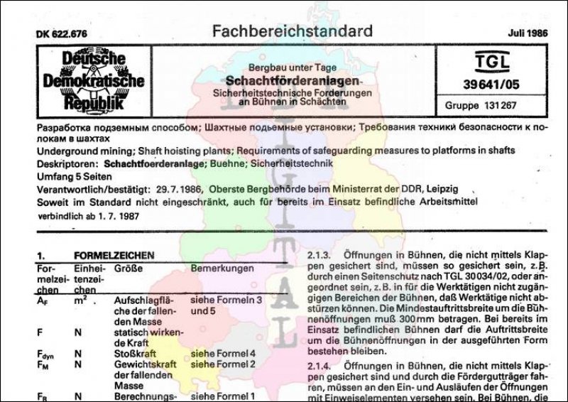 Standard: Fachbereichstandard Ausgabe: Juli 1986 verbindlich ab: 01.07.1987 Verantwortlich Oberste Bergbehörde bestätigt am: 29.07.1986 Bestätigt von: Oberste Bergbehörde Anzahl Seiten: 6