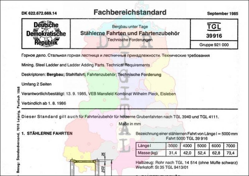 Standard: Fachbereichstandard Ausgabe: September 1985 verbindlich ab: 01.08.1986 Verantwortlich: VEB Mansfeld Kombinat Wilhelm Pieck bestätigt am: 13.09.1985 Bestätigt von: VEB Mansfeld Kombinat Wilhelm Pieck Anzahl Seiten: 2