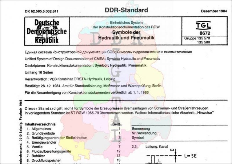 Standard: DDR-Standard Ausgabe: Dezember 1984 verbindlich ab: 01.01.1986 Verantwortlich VEB Kombinat ORSTA-Hydraulik Leipzig bestätigt am: 28.12.1984 Bestätigt von: Amt für Standardisierung, Meßwesen und Warenprüfung Anzahl Seiten: 16