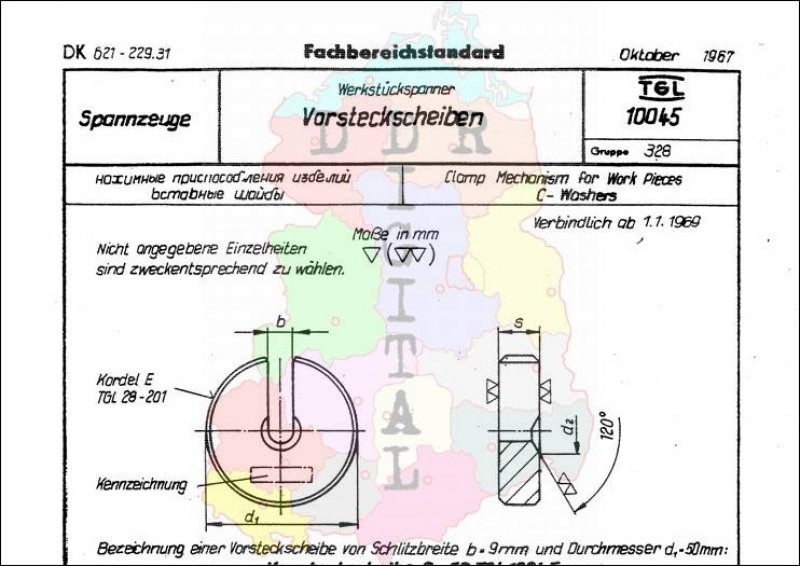 Standard: Fachbereichstandard Ausgabe: Oktober 1967 verbindlich ab: 01.01.1969 Bearbeiter: VEB Vorrichtungsbau Hohenstein bestätigt am: 25.06.1968 Bestätigt von: VVB WVH Gera Anzahl Seiten: 2