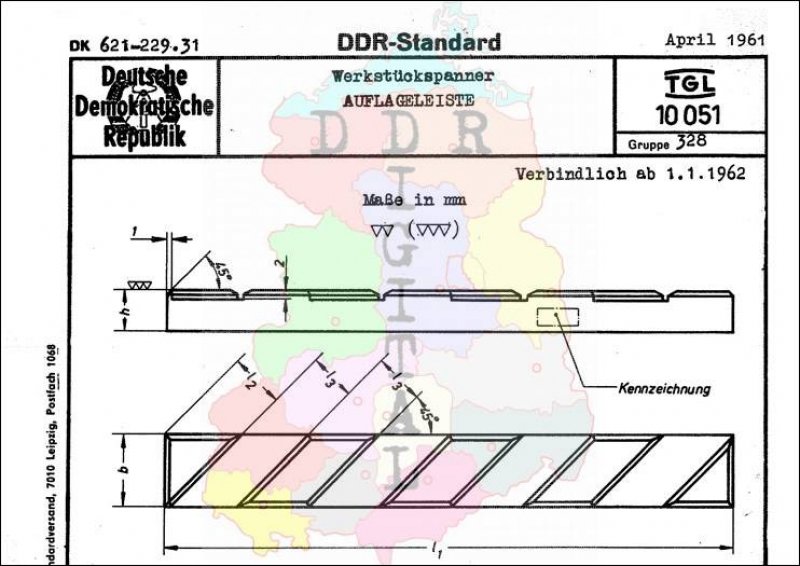 Standard: DDR-Standard Ausgabe: April 1961 verbindlich ab: 01.01.1962 Bearbeiter: bestätigt am: 14.04.1961 Bestätigt von: Amt für Standardisierung Berlin Anzahl Seiten: 2