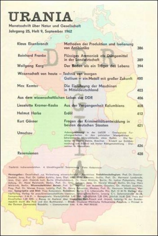 Ausgabe: Autor: Redaktionskollegium Herausgeber: Gesellschaft zur Verbreitung wissenschaftlicher Kenntnisse Erscheinungsjahr: 1962 Anzahl Seiten: 56