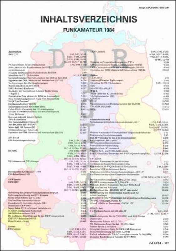 Inhaltsverzeichnis Funkamateur 1984
