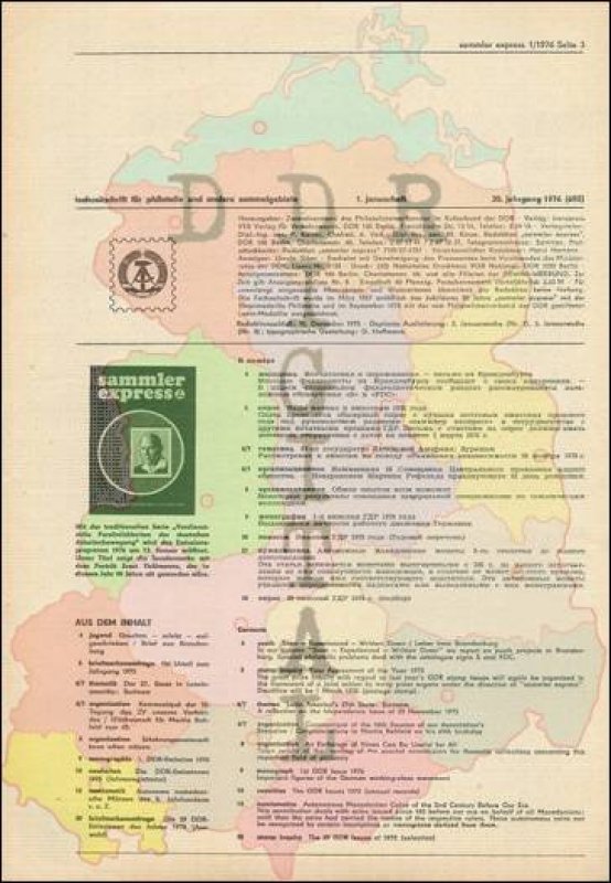 Auflage: Autor: Redaktion "sammler express" Herausgeber: Zentralvorstand des Philatelistenverband im Kulturbund der DDR Erscheinungsjahr: 1976 Anzahl Seiten: 20