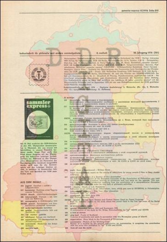 Auflage: Autor: Redaktion "sammler express" Herausgeber: Zentralvorstand des Philatelistenverband im Kulturbund der DDR Erscheinungsjahr: 1976 Anzahl Seiten: 28