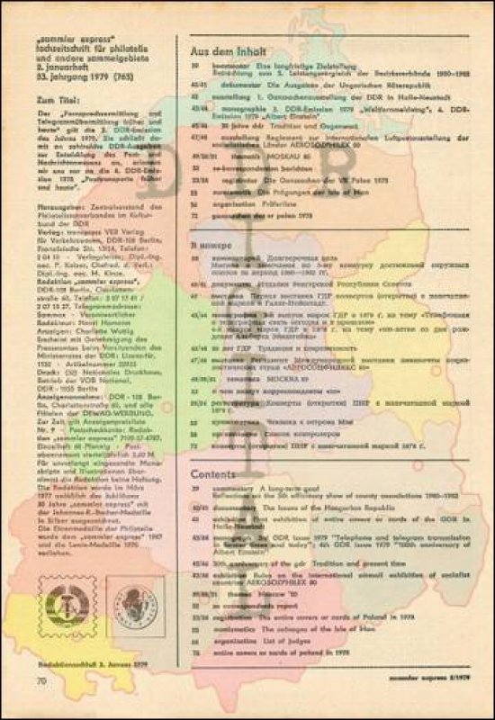 Auflage: Autor: Redaktion "sammler express" Herausgeber: Philatelistenverband im Kulturbund der DDR Erscheinungsjahr: 1979 Anzahl Seiten: 36