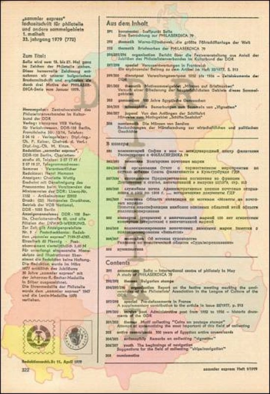 Auflage: Autor: Redaktion "sammler express" Herausgeber: Philatelistenverband im Kulturbund der DDR Erscheinungsjahr: 1979 Anzahl Seiten: 36