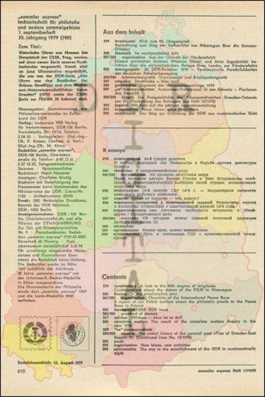 Auflage: Autor: Redaktion "sammler express" Herausgeber: Philatelistenverband im Kulturbund der DDR Erscheinungsjahr: 1979 Anzahl Seiten: 36