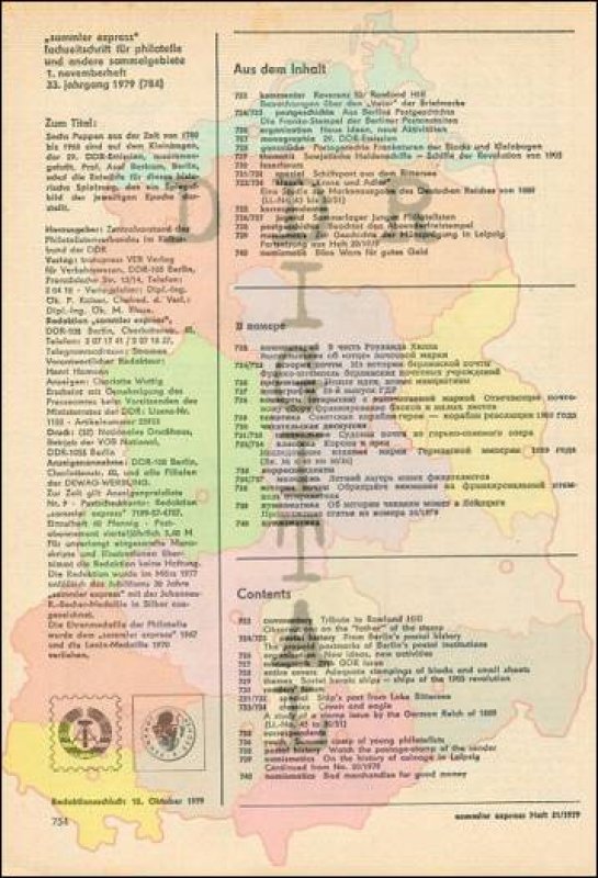 Auflage: Autor: Redaktion "sammler express" Herausgeber: Philatelistenverband im Kulturbund der DDR Erscheinungsjahr: 1979 Anzahl Seiten: 36