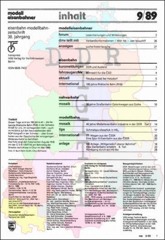Ausgabe: Autor: Redaktionsbeirat Herausgeber: Deutscher Modelleisenbahn-Verband der DDR Erscheinungsjahr: 1989 Anzahl Seiten: 32
