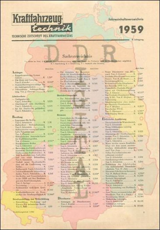 Kraftfahrzeugtechnik Jahresinhaltsverzeichnis 1959