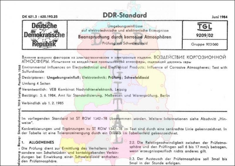 Standard: DDR-Standard Ausgabe: Juni 1984 verbindlich ab: 01.02.1985 Verantwortlich: VEB Kombinat Nachrichtenelektronik Leipzig bestätigt am: 05.06.1984 Bestätigt von: Amt für Standardisierung, Meßwesen und Warenprüfung Anzahl Seiten: 4