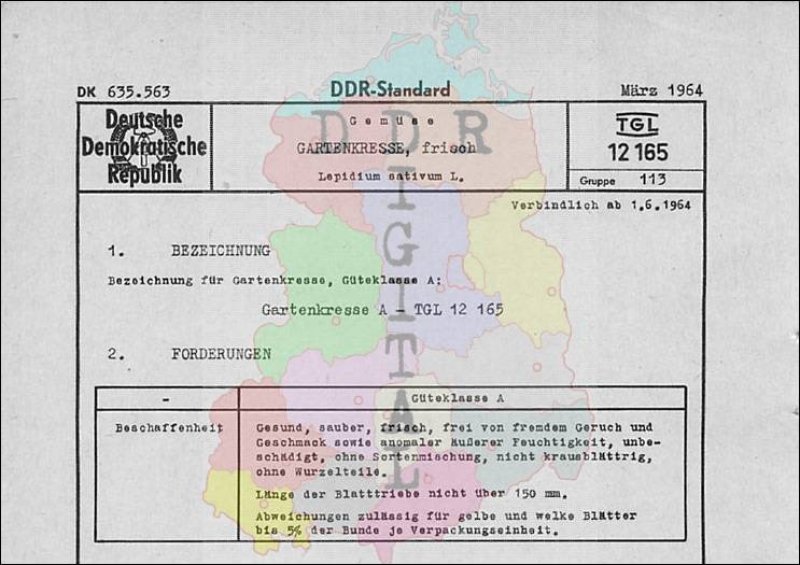 Standard: DDR-Standard Ausgabe: März 1964 verbindlich ab: 01.06.1964 Zuständiger Fachbereich: 80, Landwirtschaft, Erfassung und Forstwirtschaft bestätigt am: 23.03.1964 Bestätigt von: Amt für Standardisierung Berlin Anzahl Seiten: 2