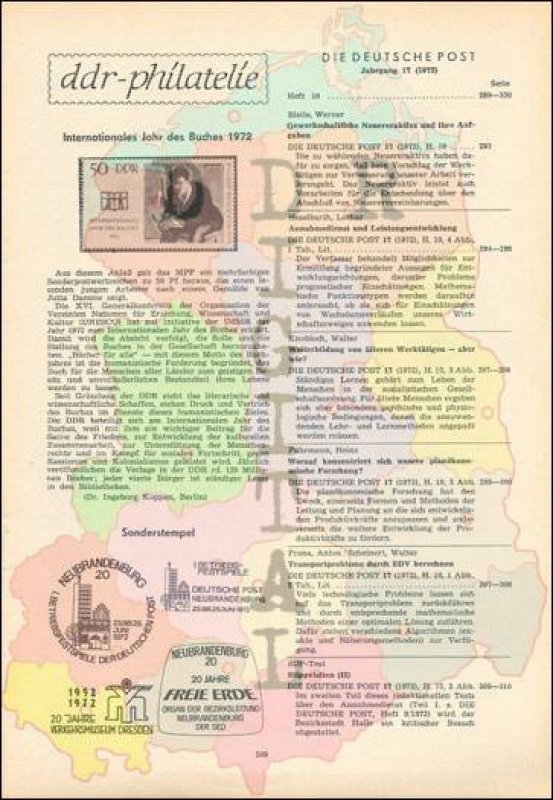 Ausgabe: Autor: Redaktionsbeirat Herausgeber: Ministerium für Post- und Fernmeldewesen Erscheinungsjahr: 1972 Anzahl Seiten: 36
