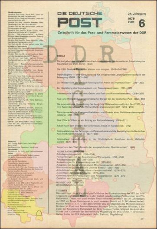 Ausgabe: Autor: Redaktionsbeirat Herausgeber: Ministerium für Post- und Fernmeldewesen Erscheinungsjahr: 1979 Anzahl Seiten: 52