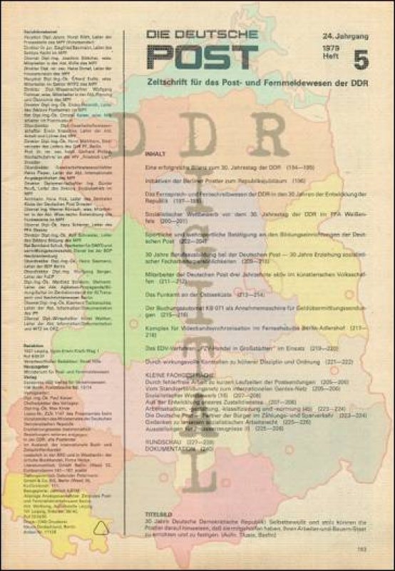 Ausgabe: Autor: Redaktionsbeirat Herausgeber: Ministerium für Post- und Fernmeldewesen Erscheinungsjahr: 1979 Anzahl Seiten: 52